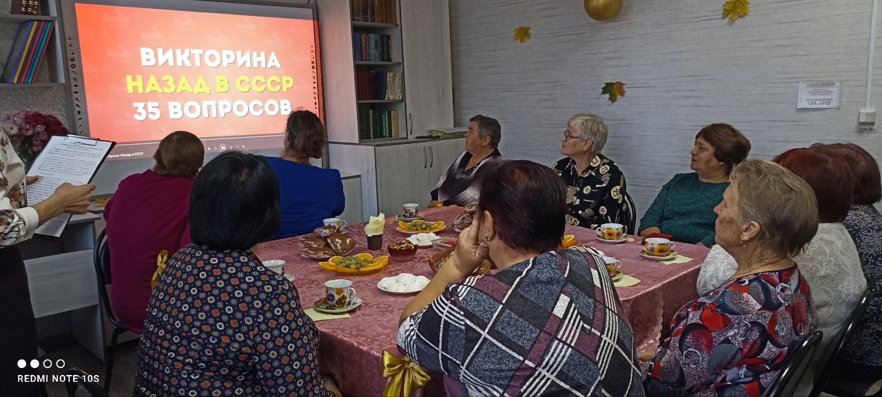 В рамках проведения Декады старшего поколения в учреждении прошло праздничное мероприятие с ветеранами учреждения пенсионного возраста. Для приглашенных гостей были организованы викторины «Назад в СССР» и «Вы родом из СССР», а также музыкальная игра «Угадай мелодию». Вспомнили и известные телепередачи из СССР, а также крылатые фразы из советских фильмов.