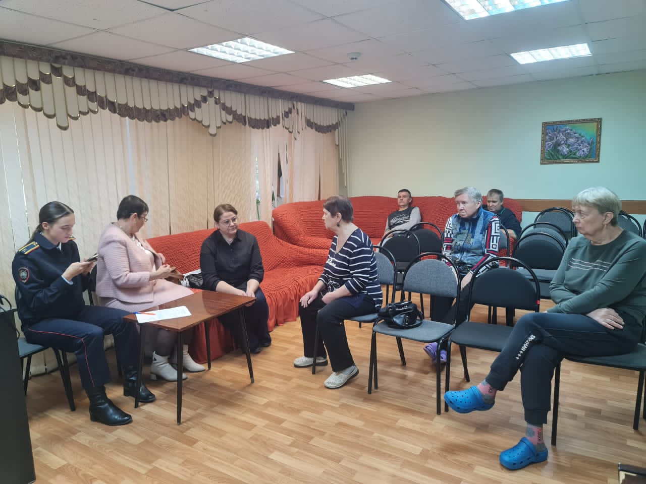 Сегодня в нашем Центре прошел мастер класс по художественной обработке дерева (роспись спила дерева) и лекция МВД на тему безопасности для пенсионеров